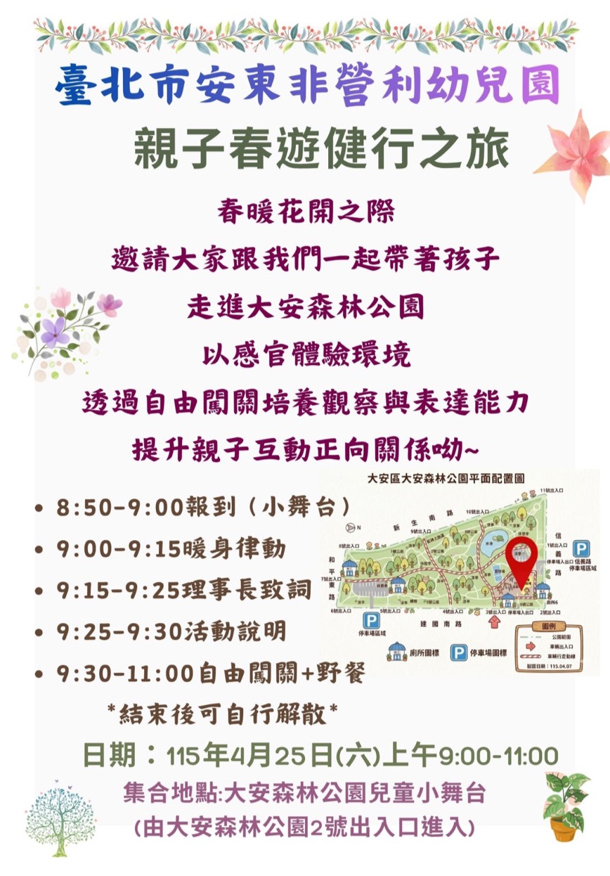 🌳🌳安東幼兒園邀請大家 一起走進大安森林公園以感官體驗環境唷~🌳🌳